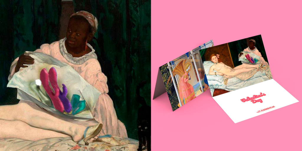 Durante San Valentín Plátanomelón, lanzamos una acción especial: regalar una postal de viaje, como guiño al “viaje” que ofrecen sus productos. Utilizamos imágenes provocadoras inspiradas en obras clásicas del arte, reinterpretadas sustituyendo los regalos tradicionales —como las flores— por opciones que priorizan su bienestar, placer y disfrute.